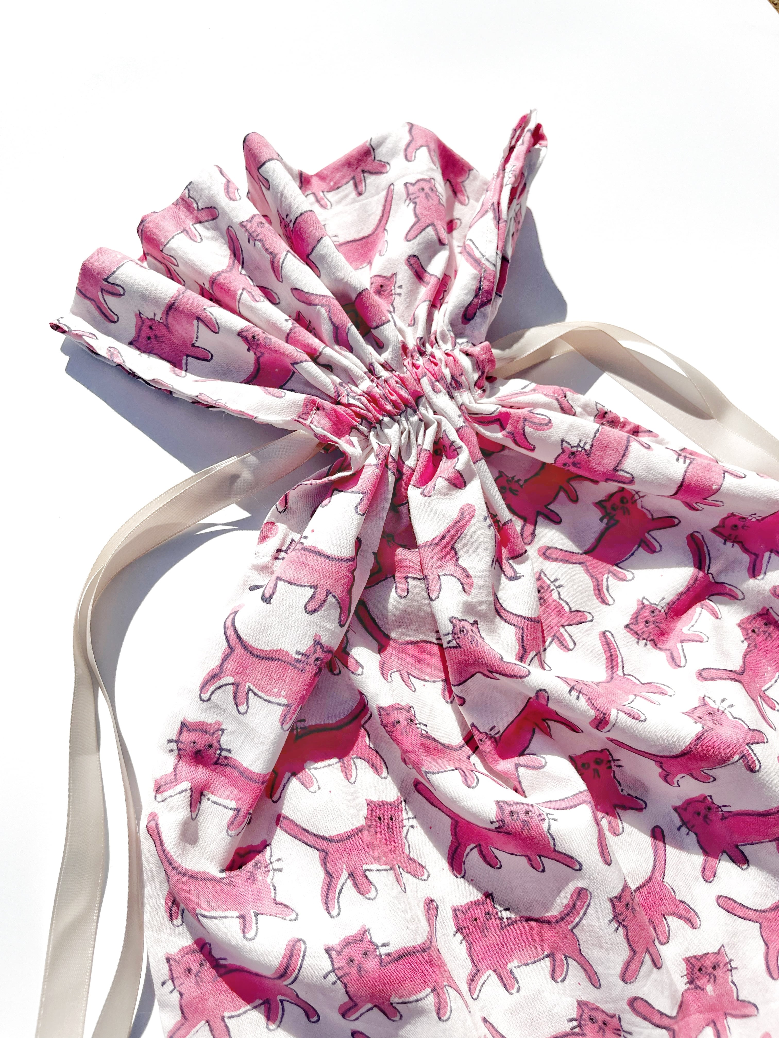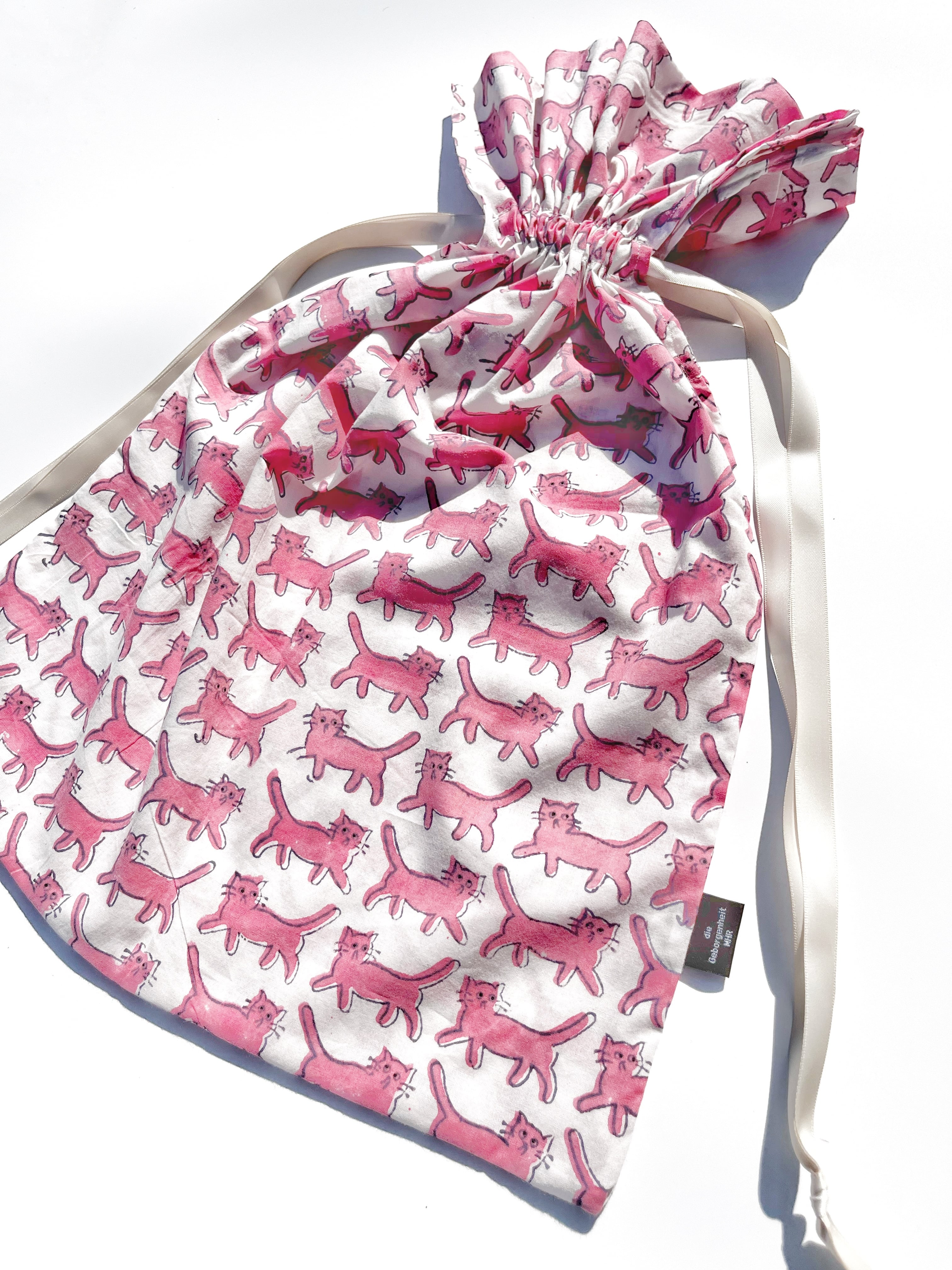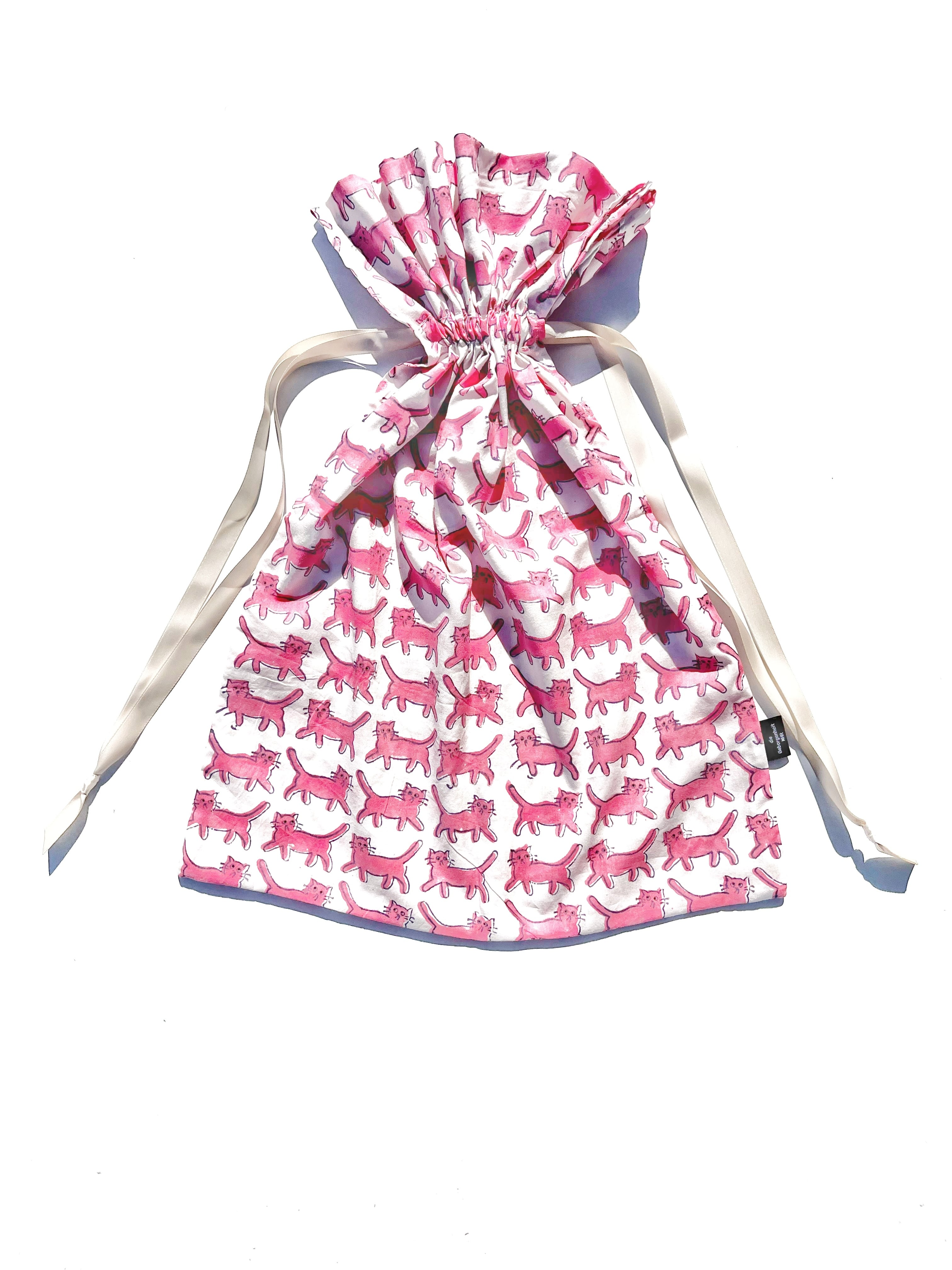 巾着 L size: 気まぐれネコ pink