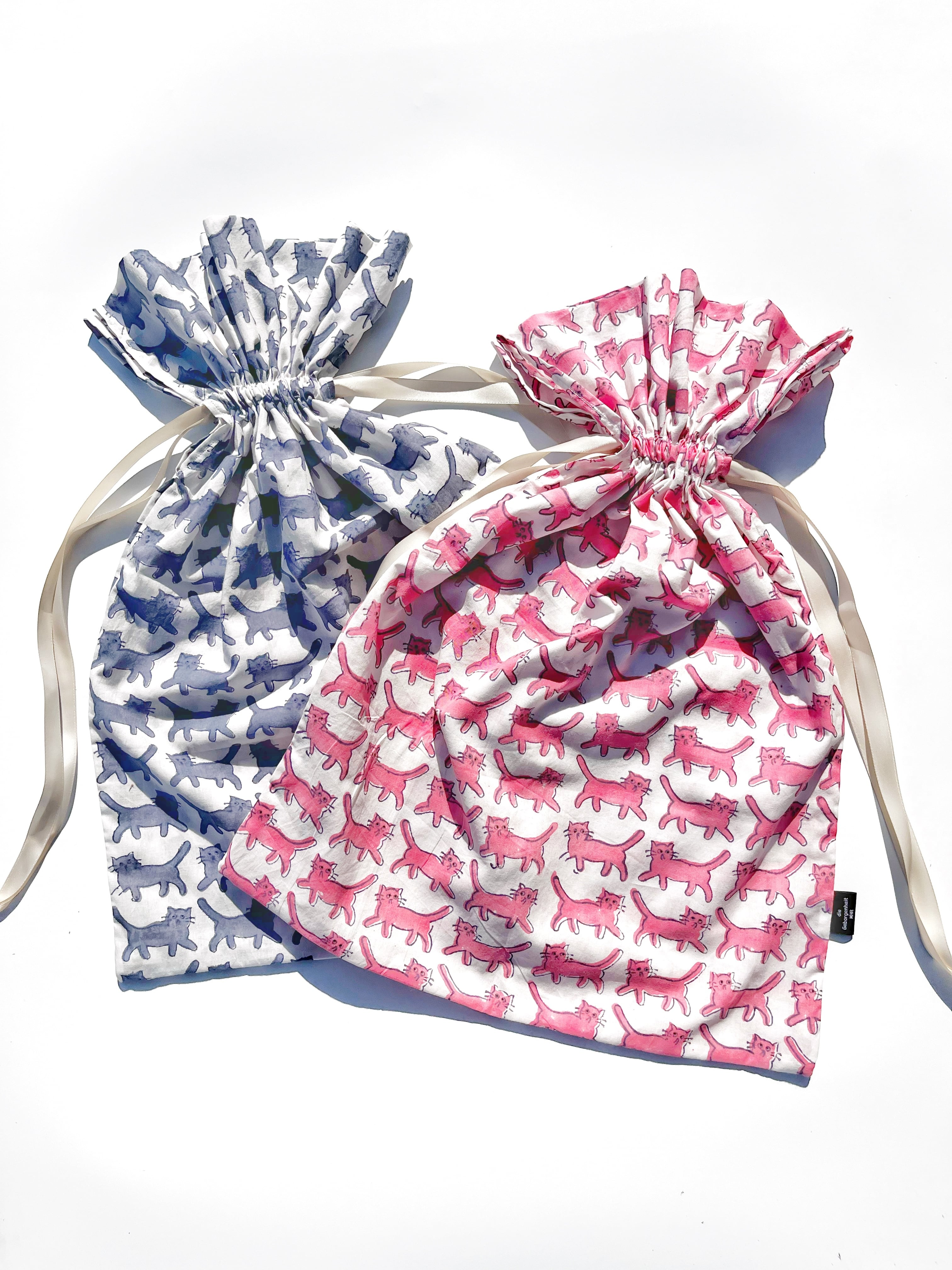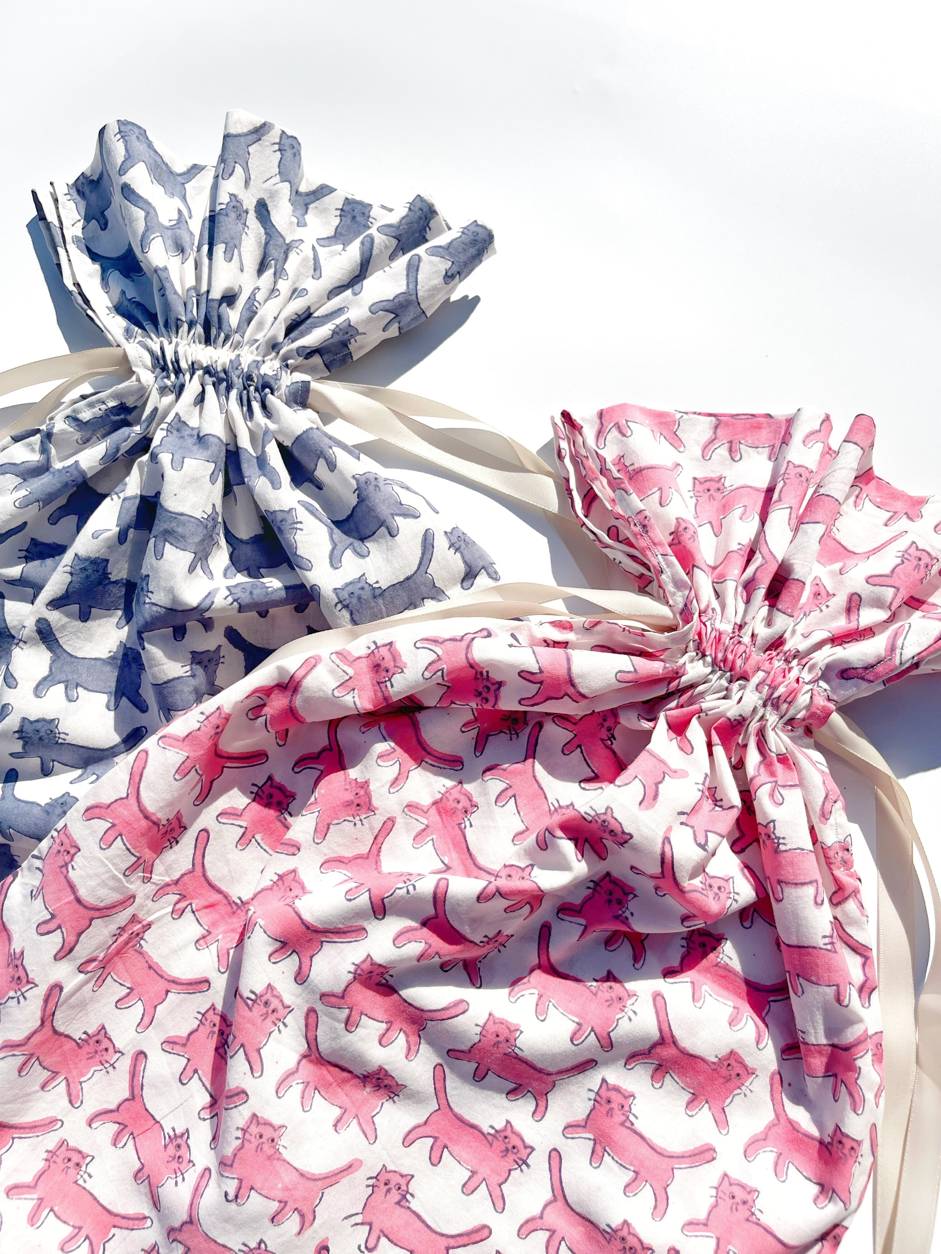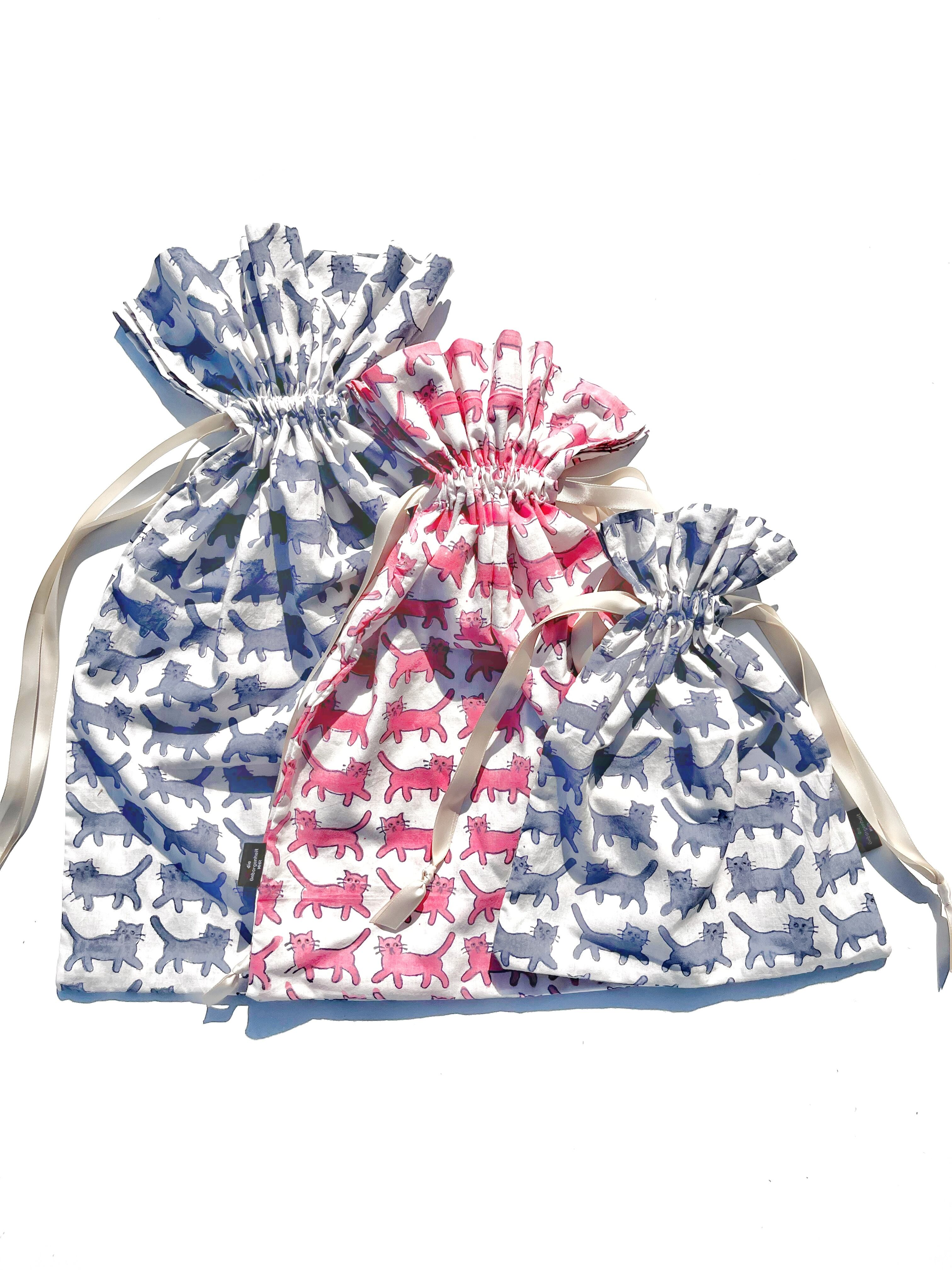 巾着 L size: 気まぐれネコ pink