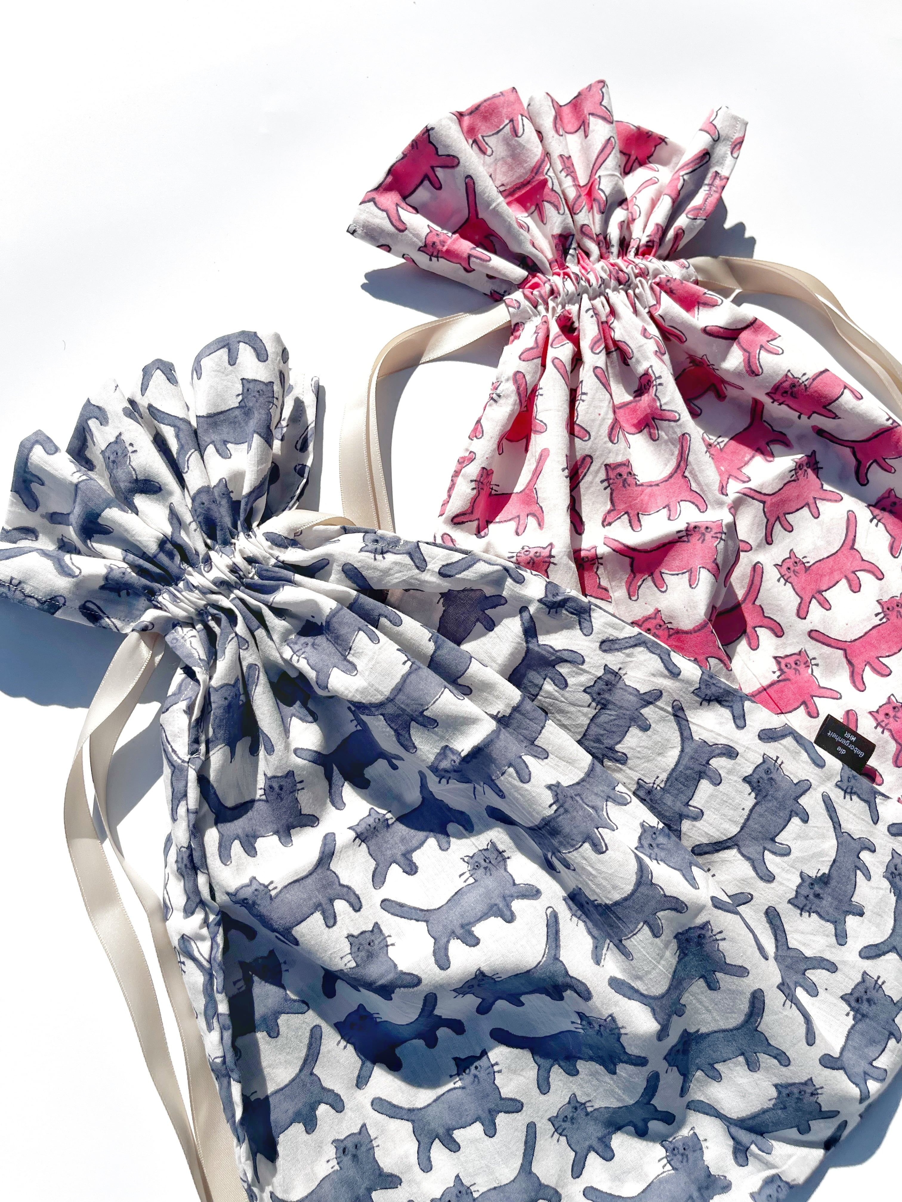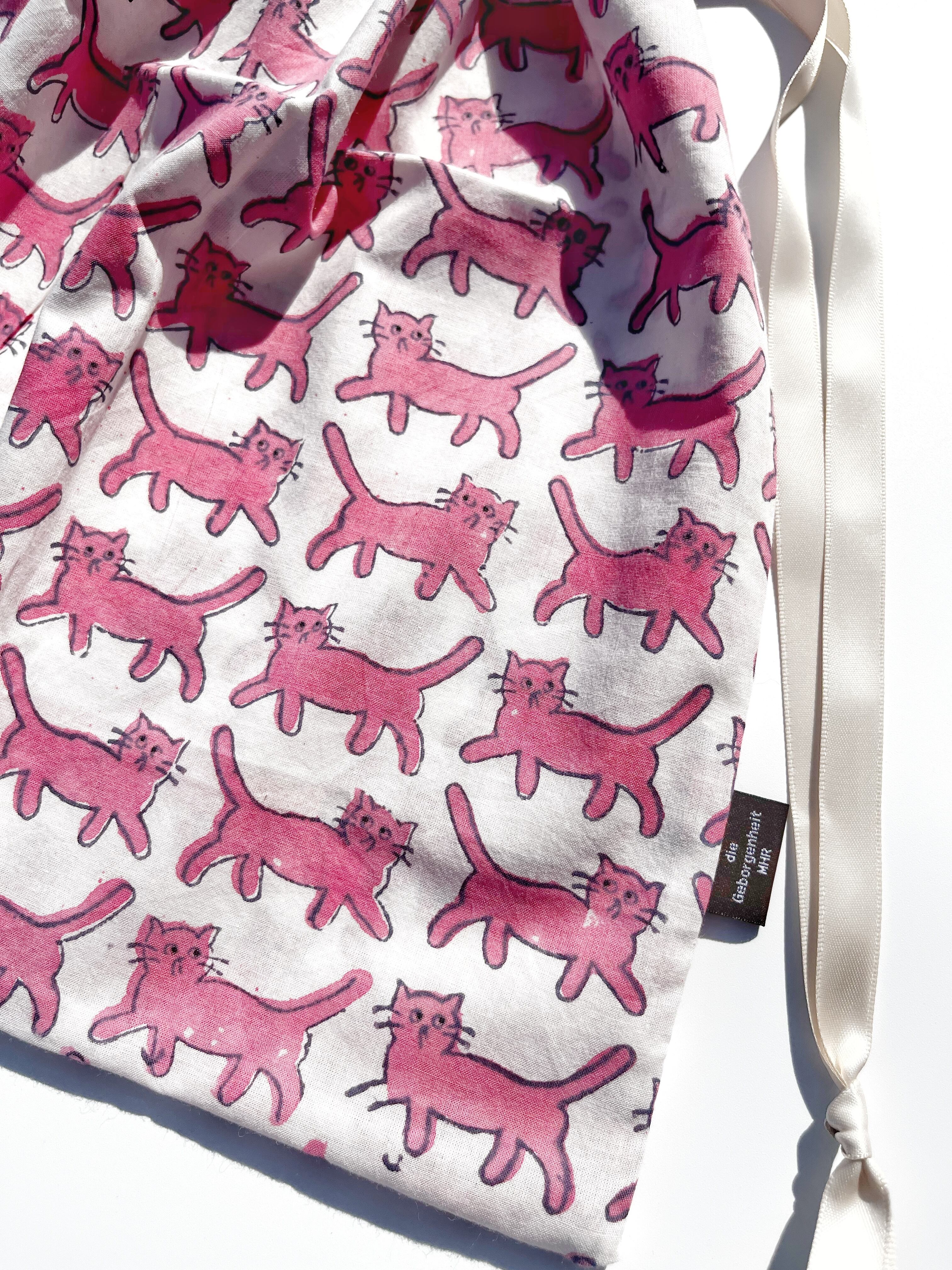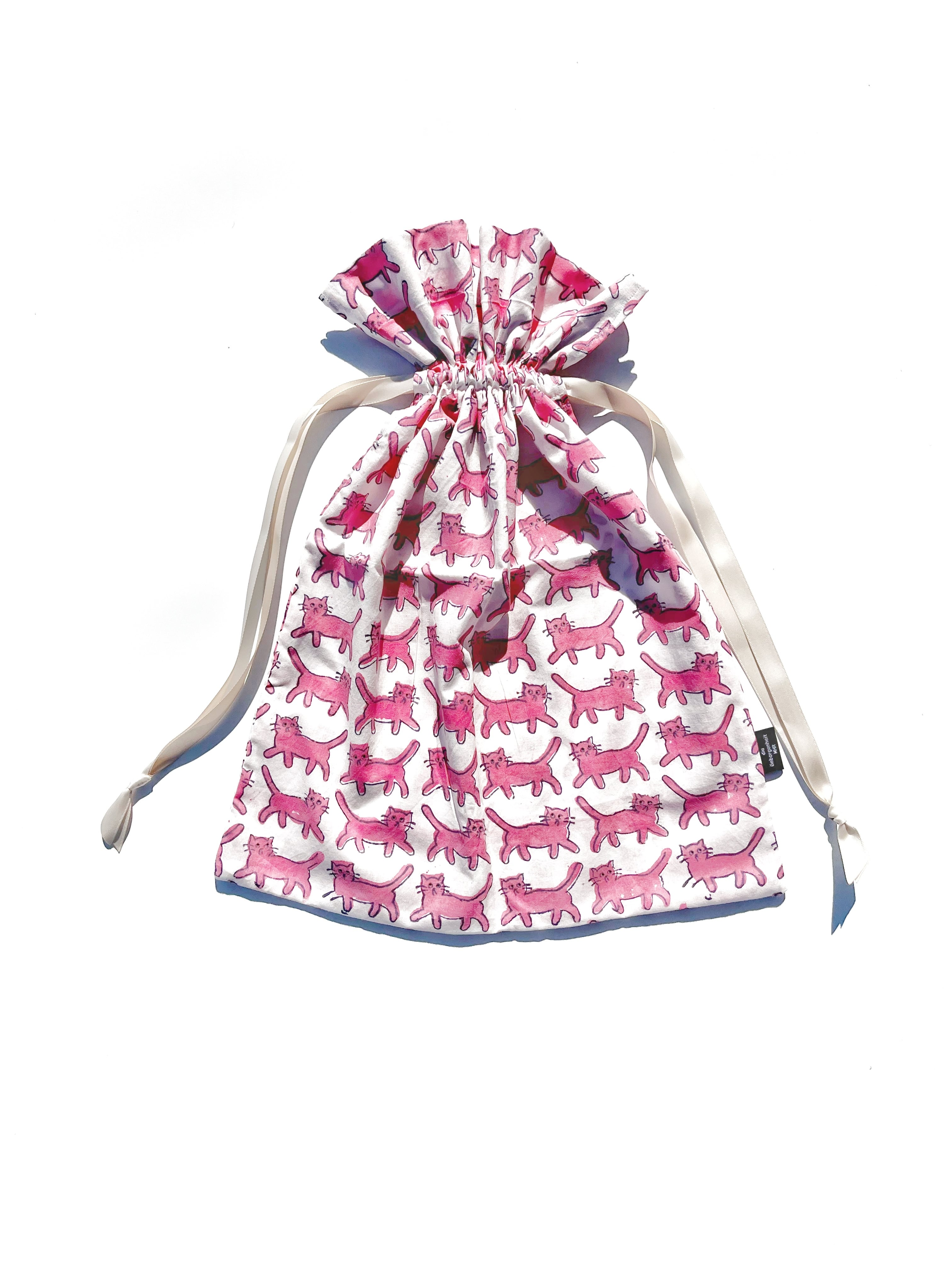 巾着 M size:気まぐれネコ pink